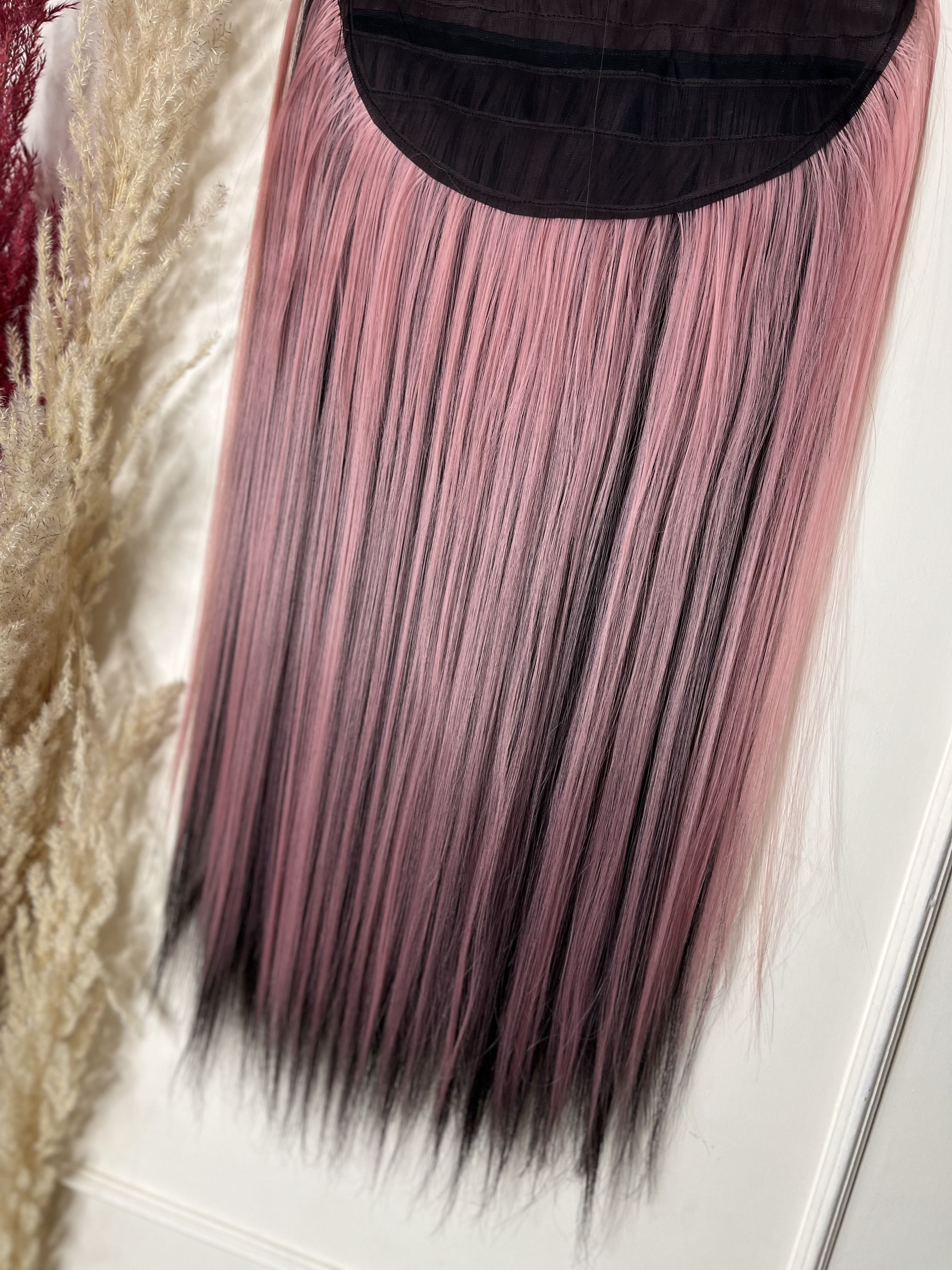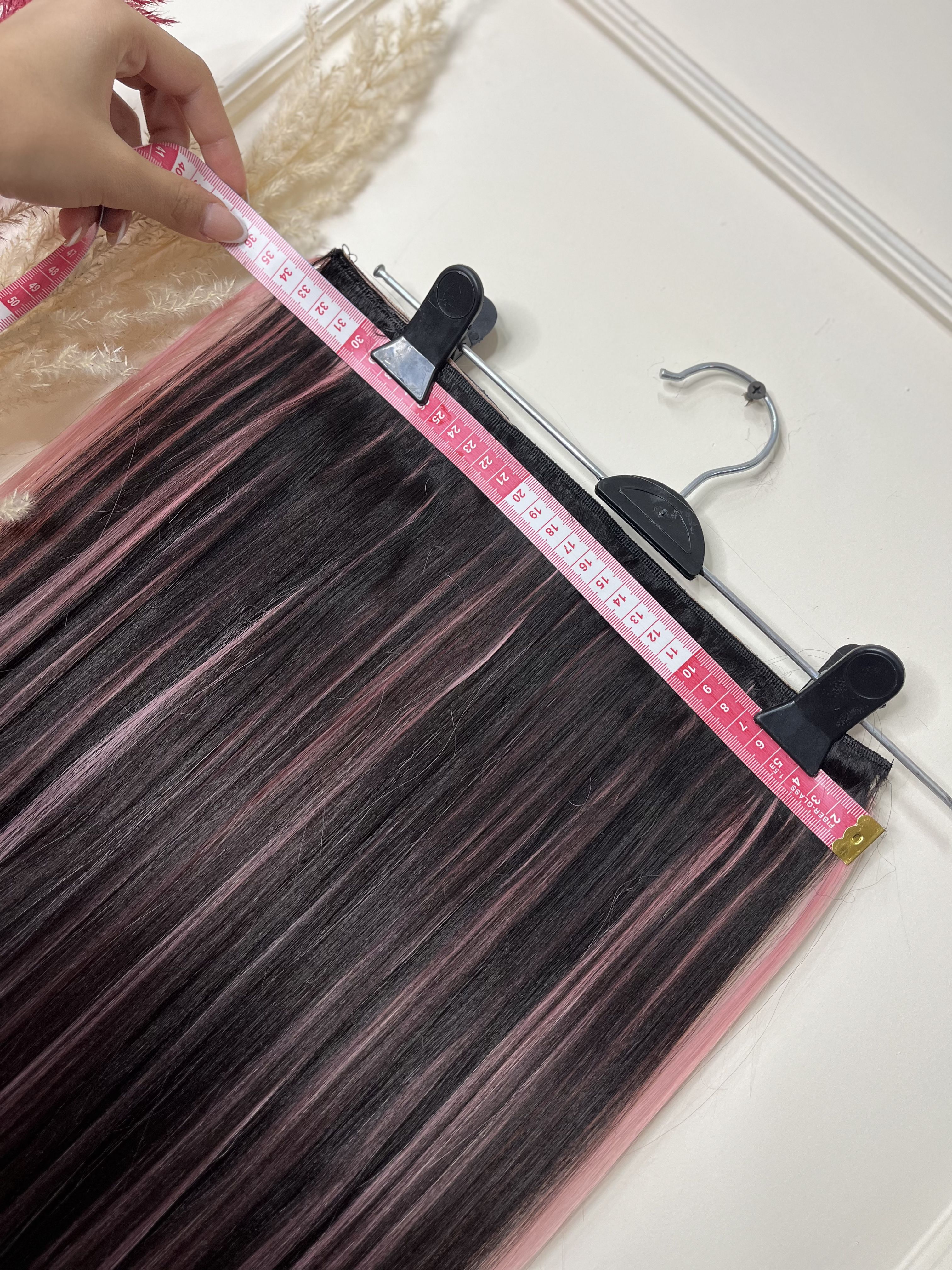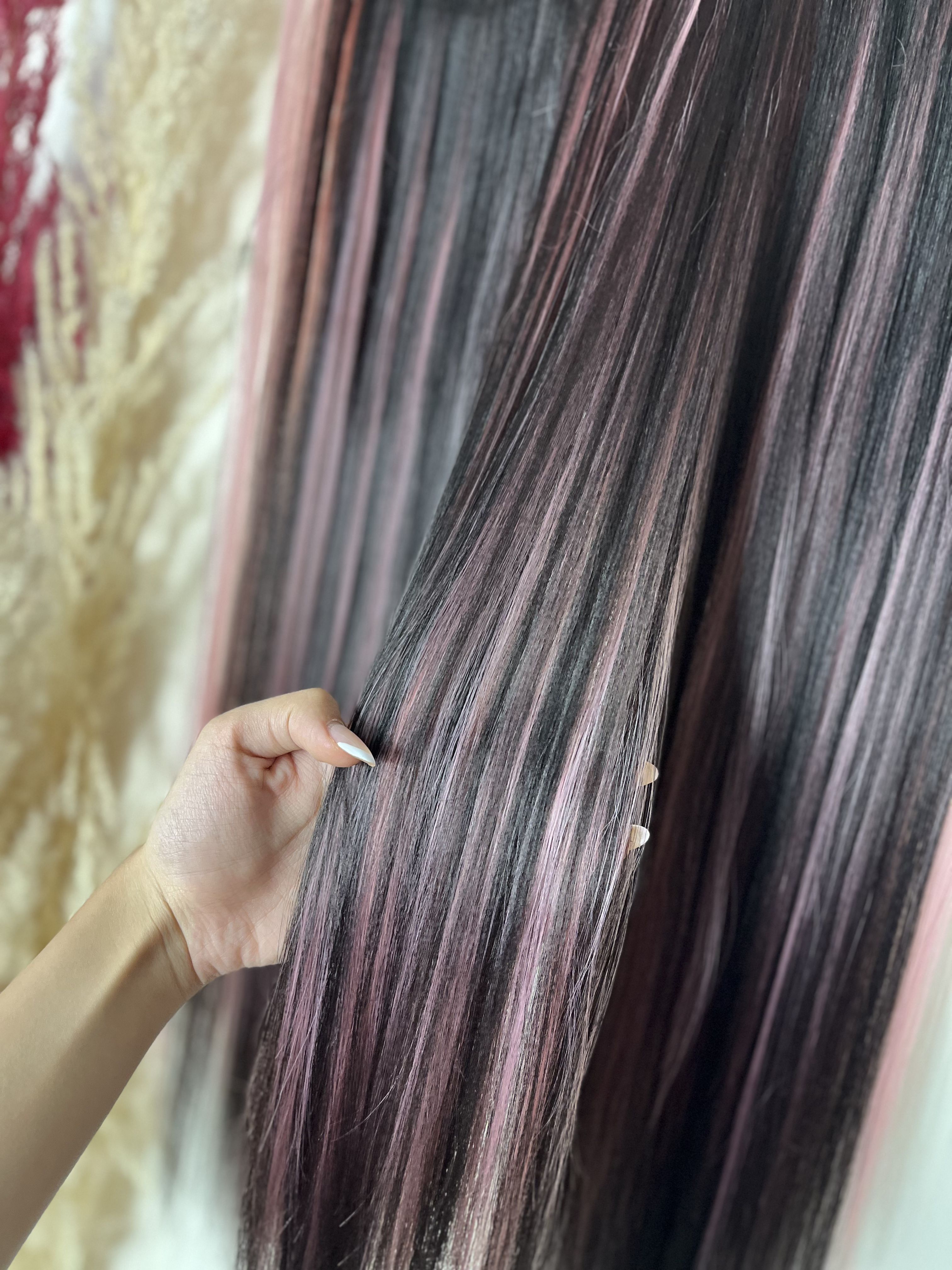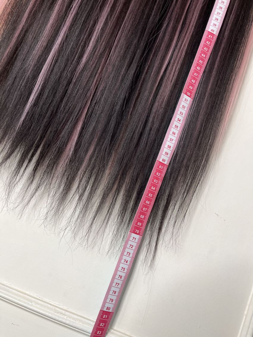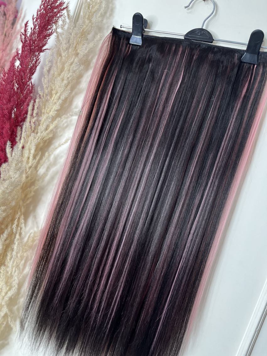 اکستنشن 5گیره-قد 70سانت -رنگ لایت مشکی صورتی-قابل حرارت و شستشو-الیاف ابریشمی
