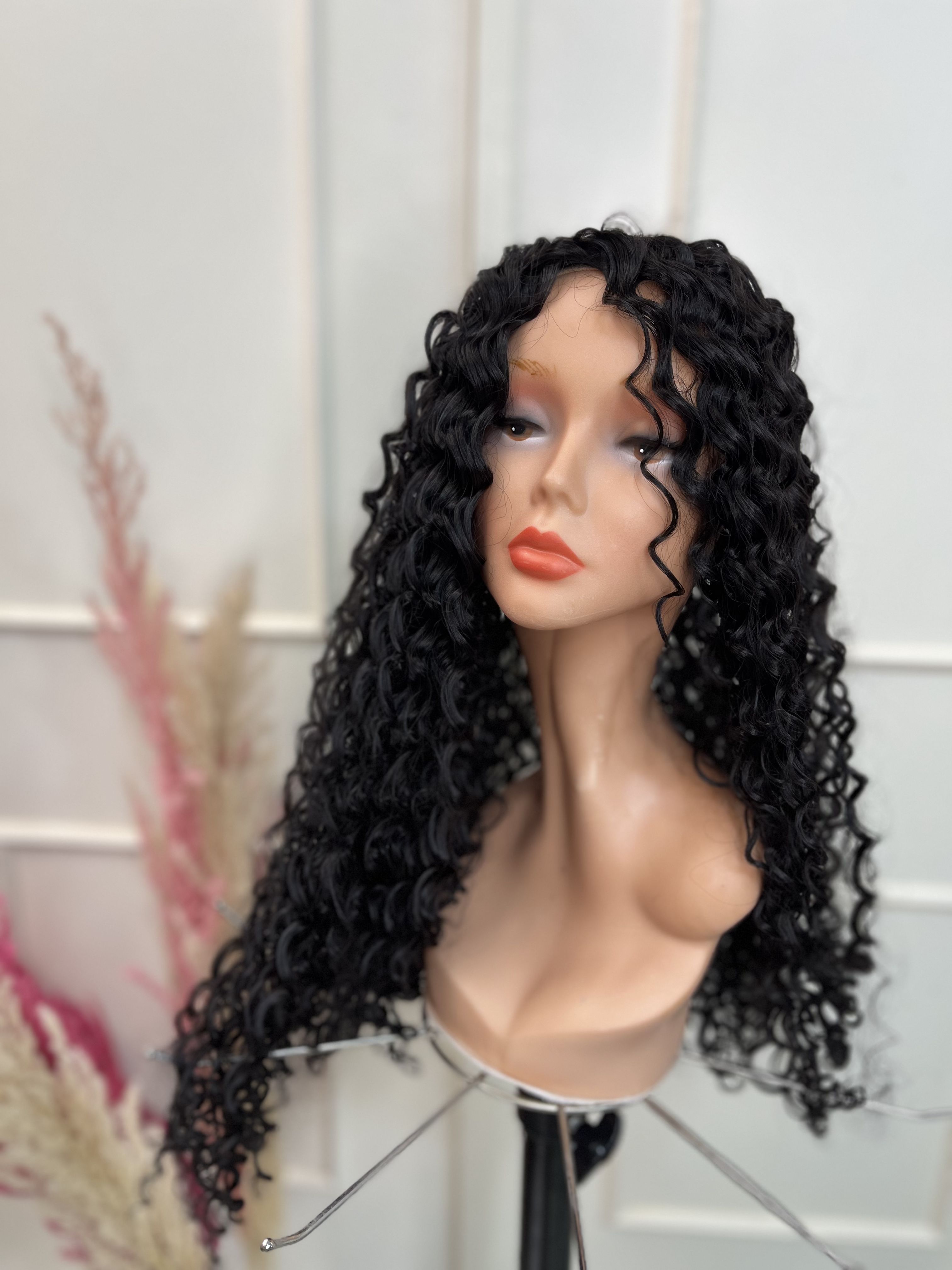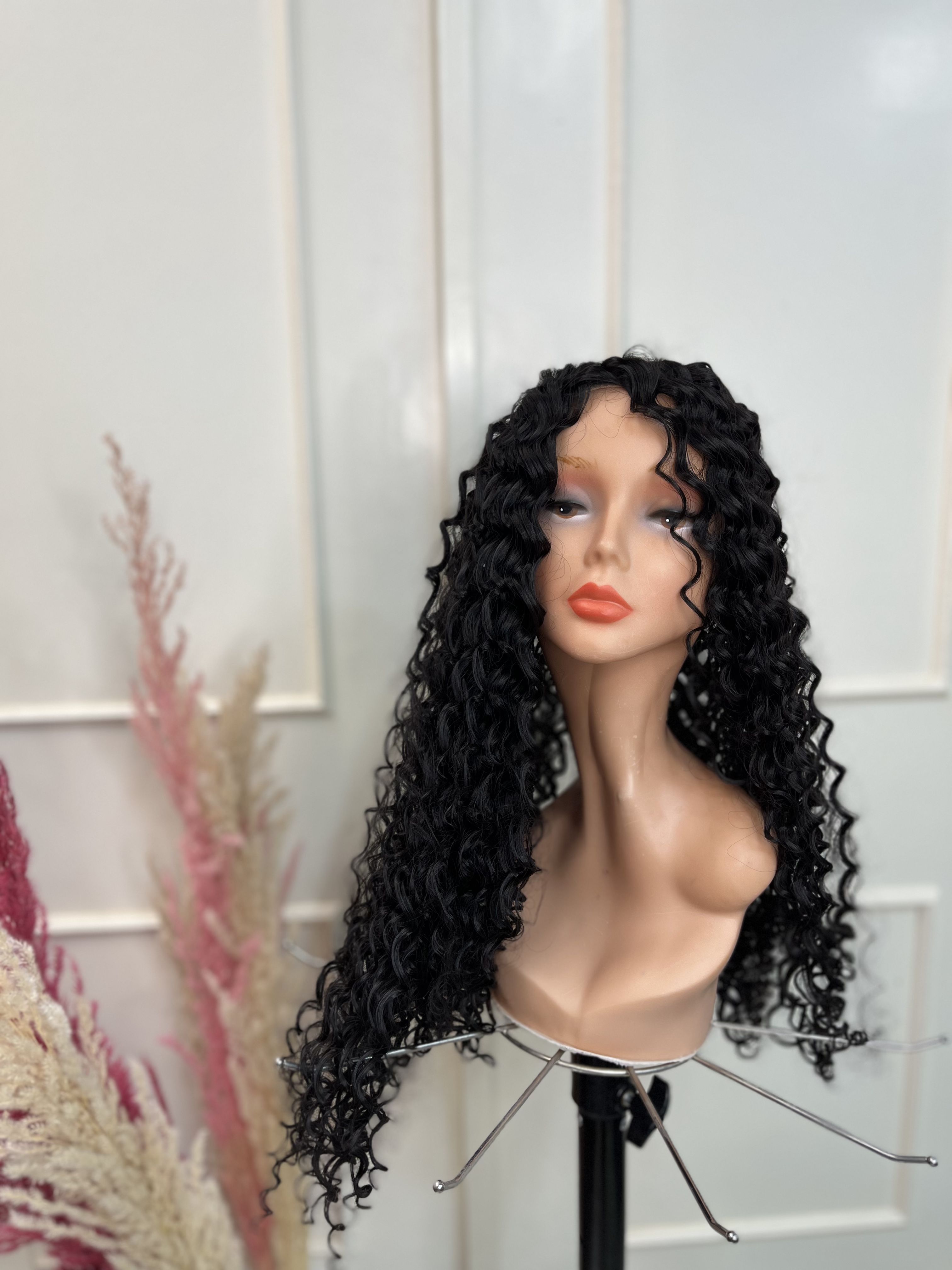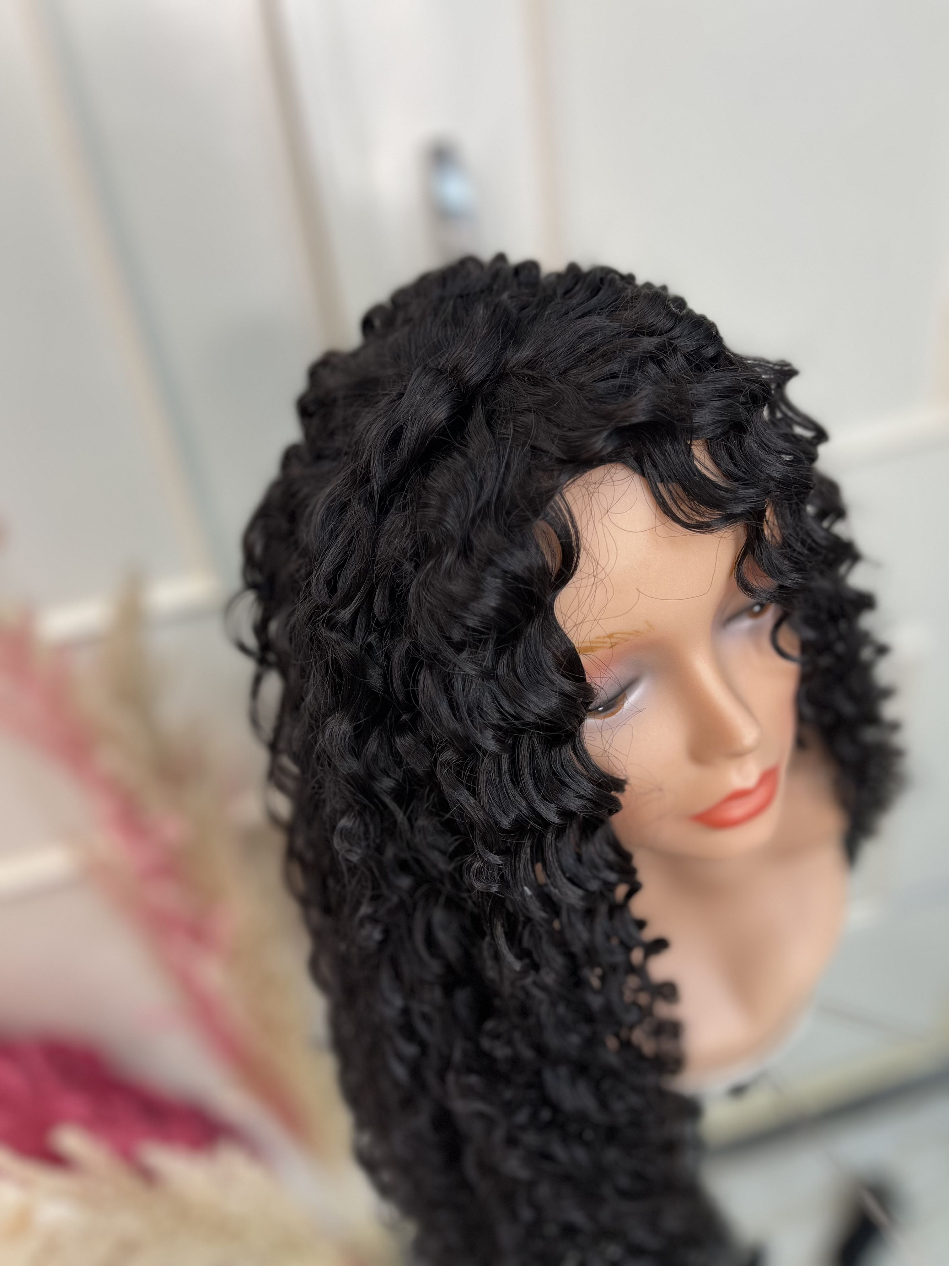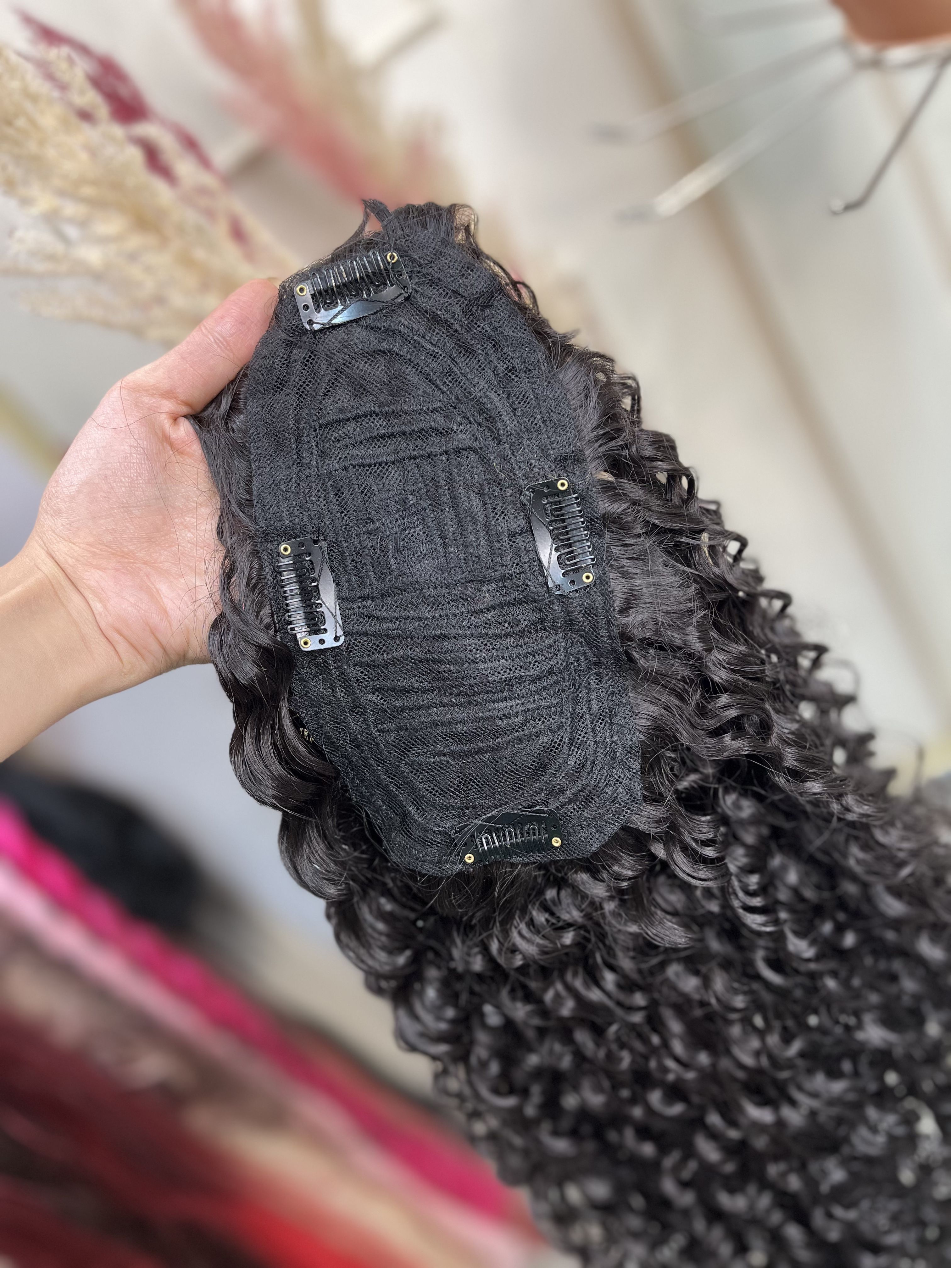 پروتز مو فر کفسری-زیر کار گیره داره که نصب میشه محکم رو سر-اینکار رنگ مشکی طبیعی قد 50سانت فر عروسکی