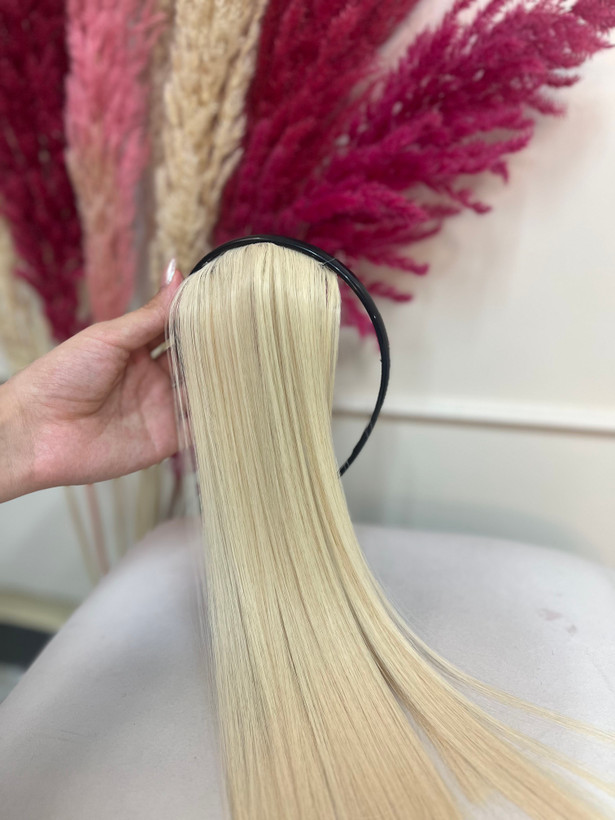 این اکستنشن برای کسانی مناسبه که میخوان جلو موها و شقیقه اشون پر تر به نظر بیاد-سفیدی موها رو هم کاور میکنه-زیر کار هم گیره داره که نمیذاره از سرتون تکون بخوره-قابل حرارت وشستشو-قدهاشون حدودا 40 سانت