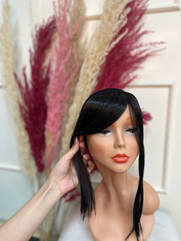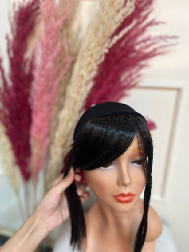 این اکستنشن برای کسانی مناسبه که میخوان جلو موها و شقیقه اشون پر تر به نظر بیاد-سفیدی موها رو هم کاور میکنه-زیر کار هم گیره داره که نمیذاره از سرتون تکون بخوره و رنگ هد ها رندوم مشکی-کرم و سفید است-قابل حرارت وشستشو-قدهاشون حدودا 40 سانت