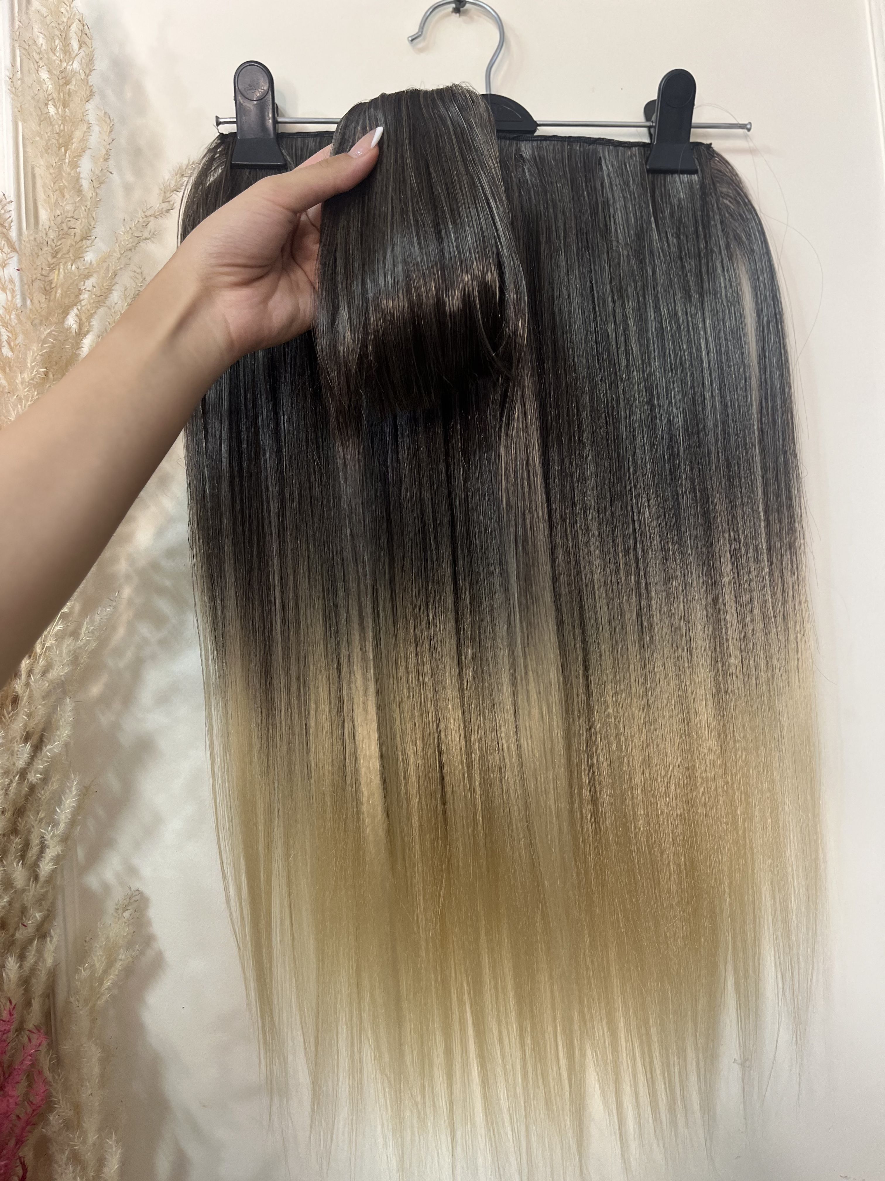 اکستنشن گیره ای لایت و چتری بغل دار امبره -به صورت ست هستن که تک تک هم میتونید تهیه کنید-قابل حرارت و شستشو-قد50سانت-دوخت چتری هیدن هست