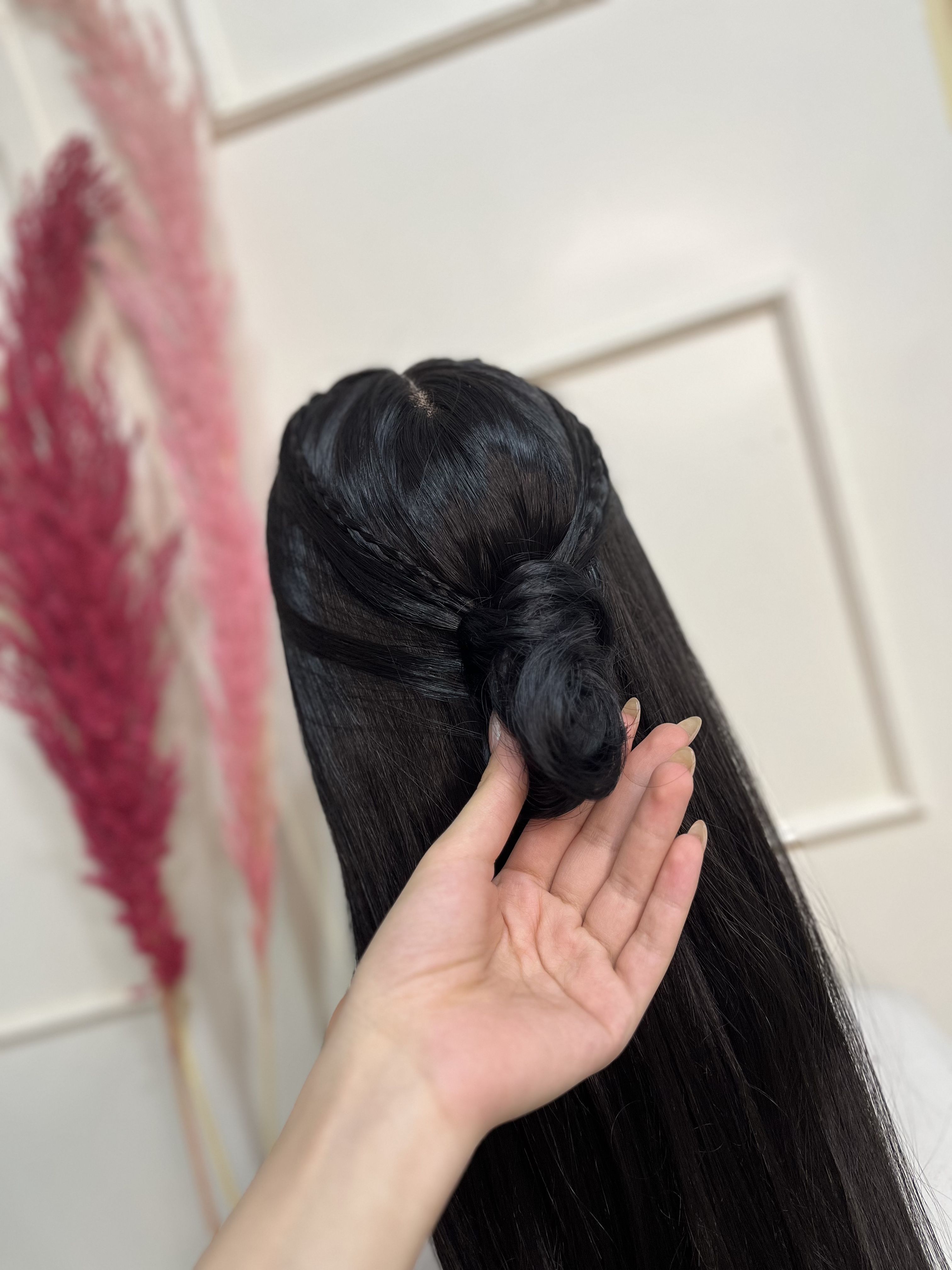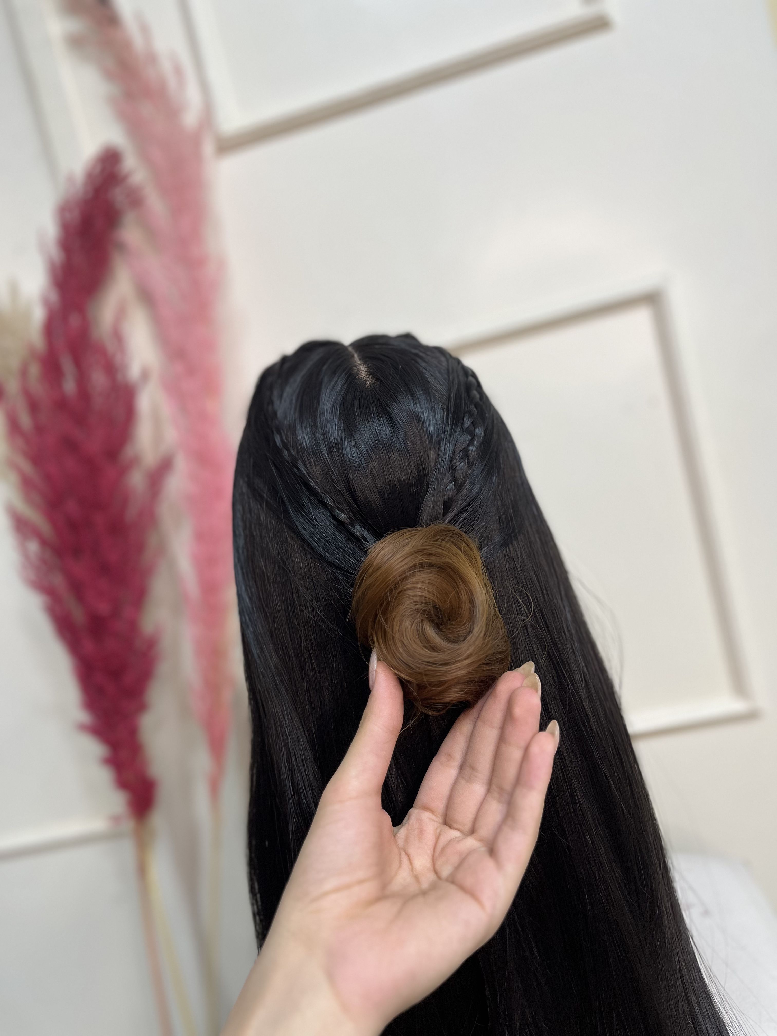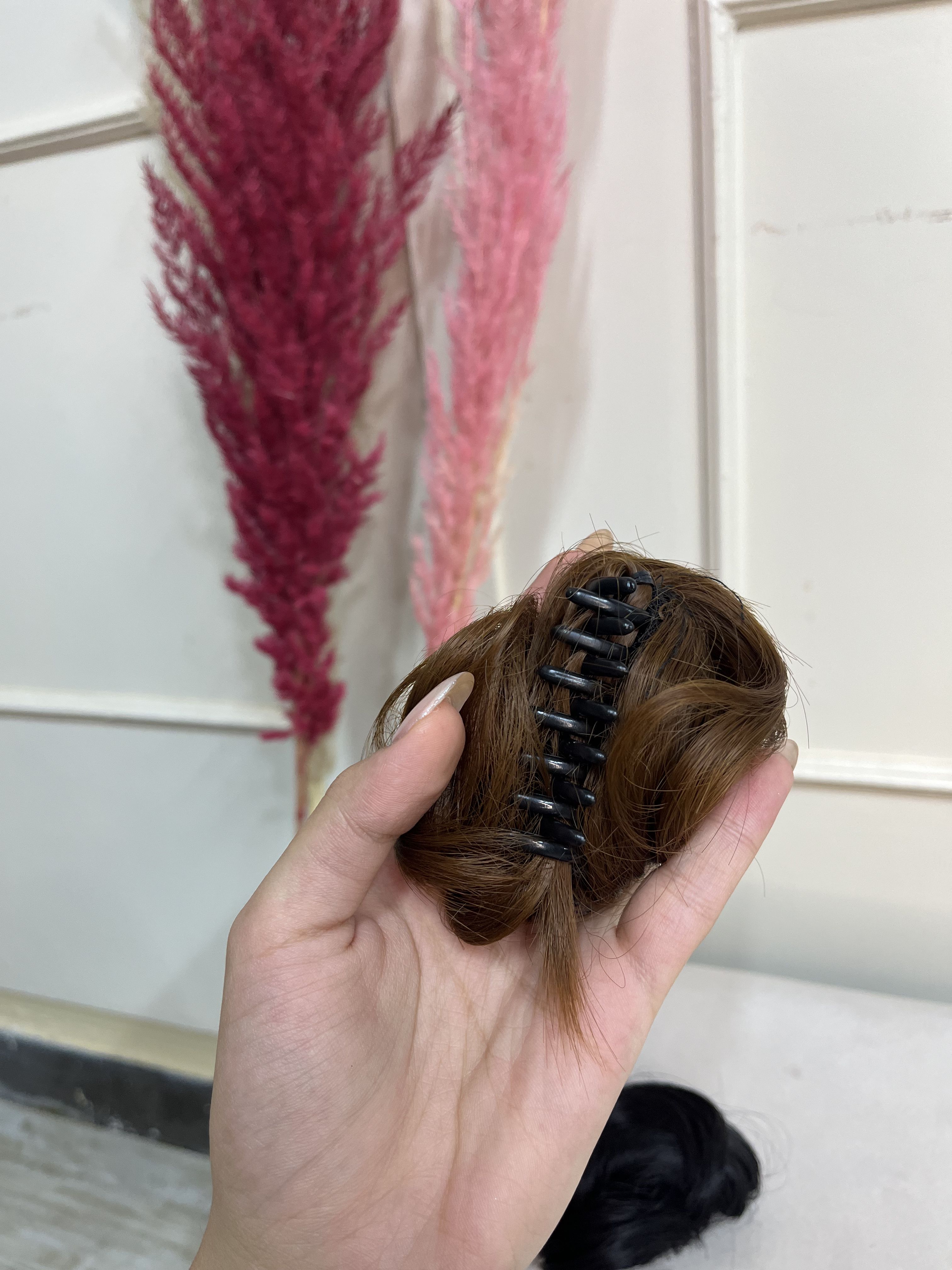 یه کلیپس کوچولو به دورش مو پیچیده شده که به صورت خیلی طبیعی وقتی موهاتون رو میبندید پر حجم تر نشونش بده
