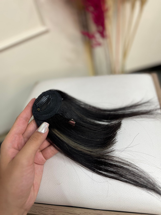 چتری مو طبیعی-علاوه بر قابل حرارت و شستشو بودن قابل رنگ کردن و کراتین کردن هم هست-هررنگی که بخواید میتونید روی مو در بیارید-رنگ فعلی کار مشکی طبیعی که تست رنگ هم از مو گرفته شده-تک گیره و دوخت هیدن
