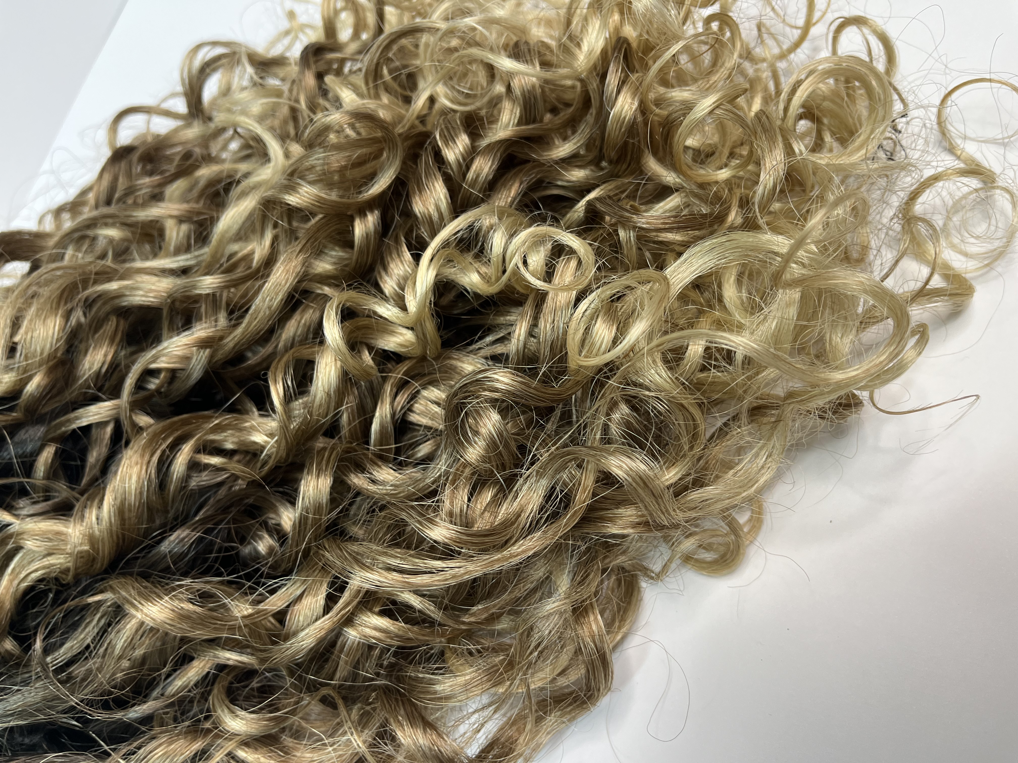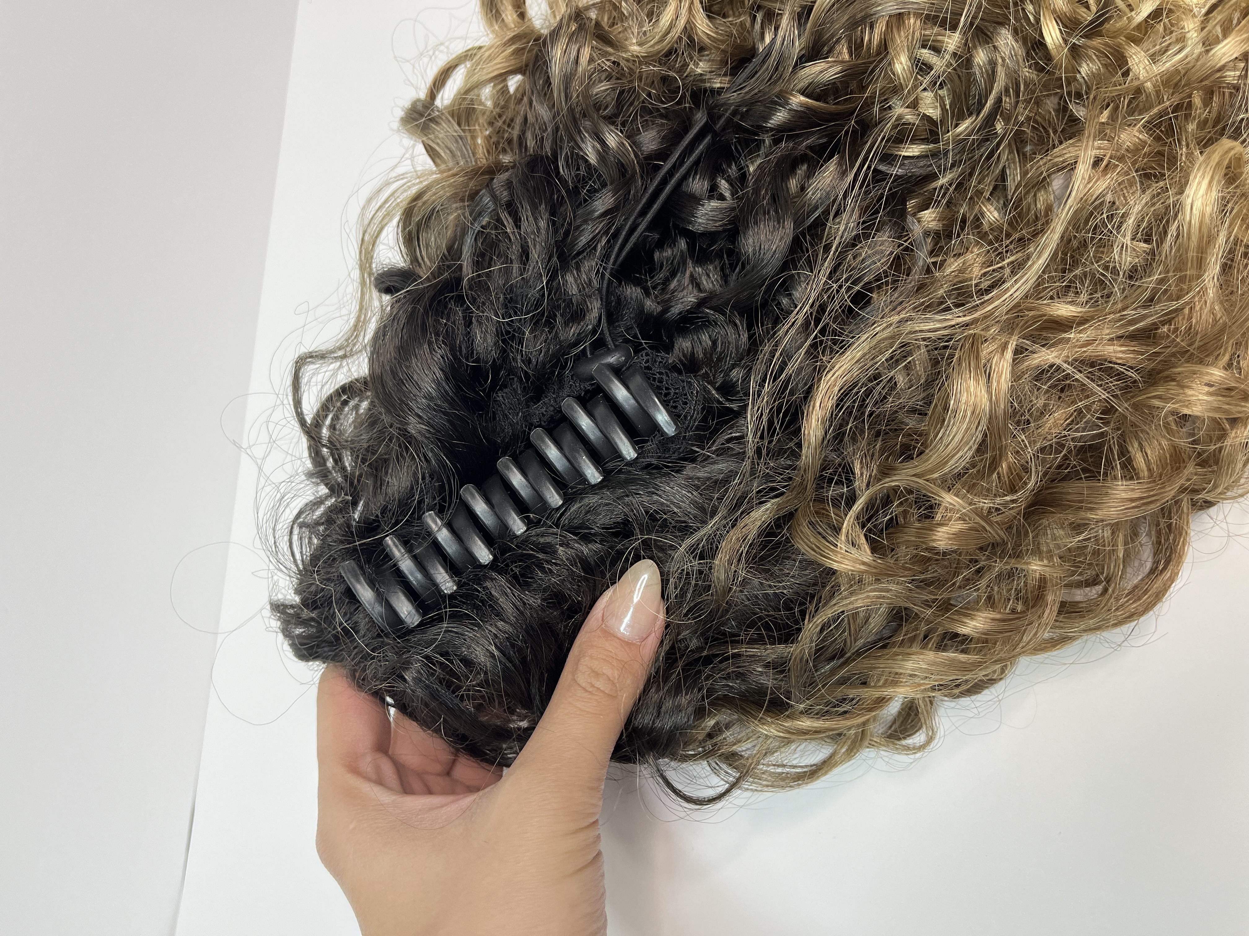 دم اسبی فرفری امبره-قد حدودا30سانت -جایگزین شنیون برای مراسم ها-قابل حرارت و شستشو