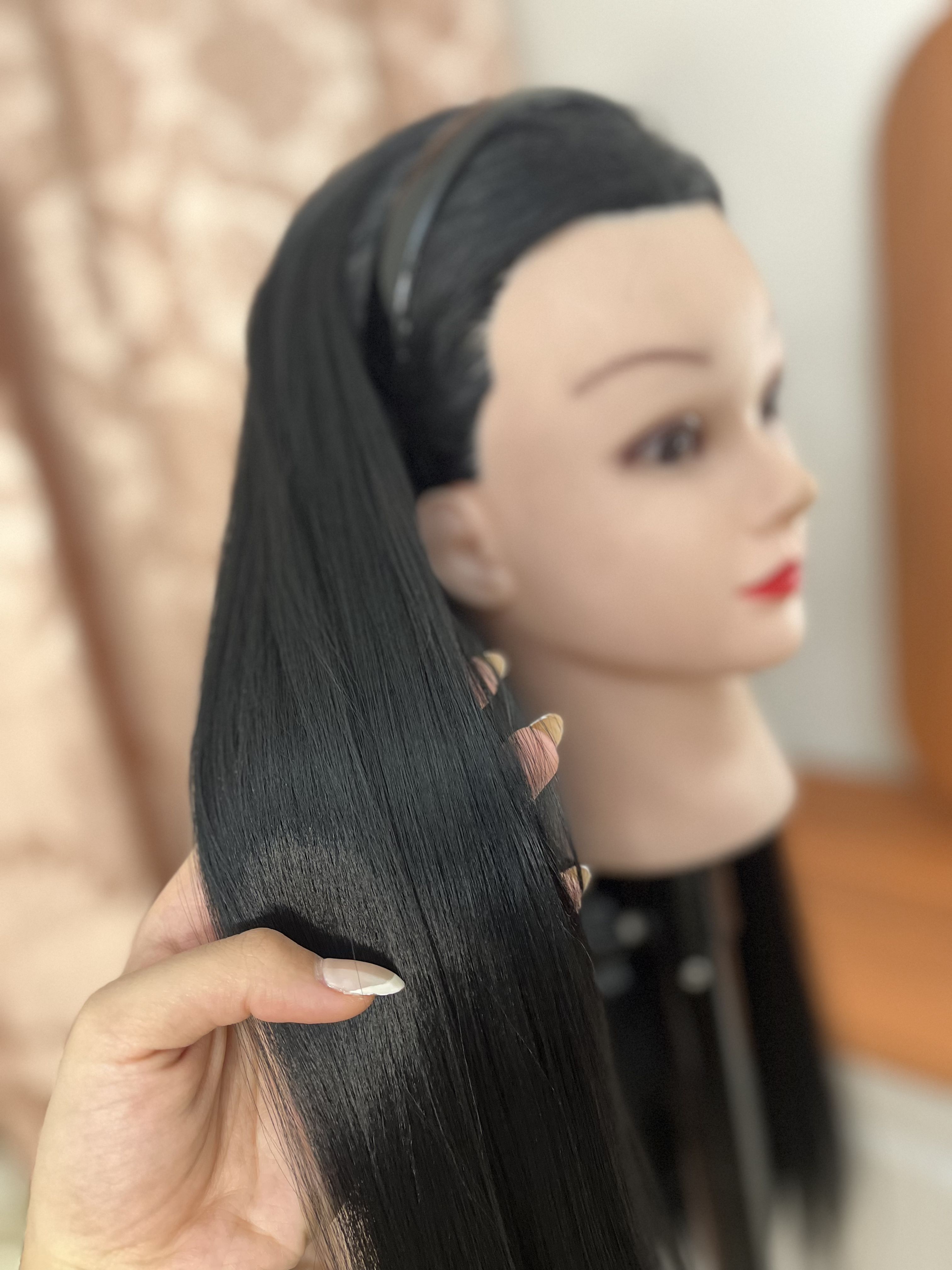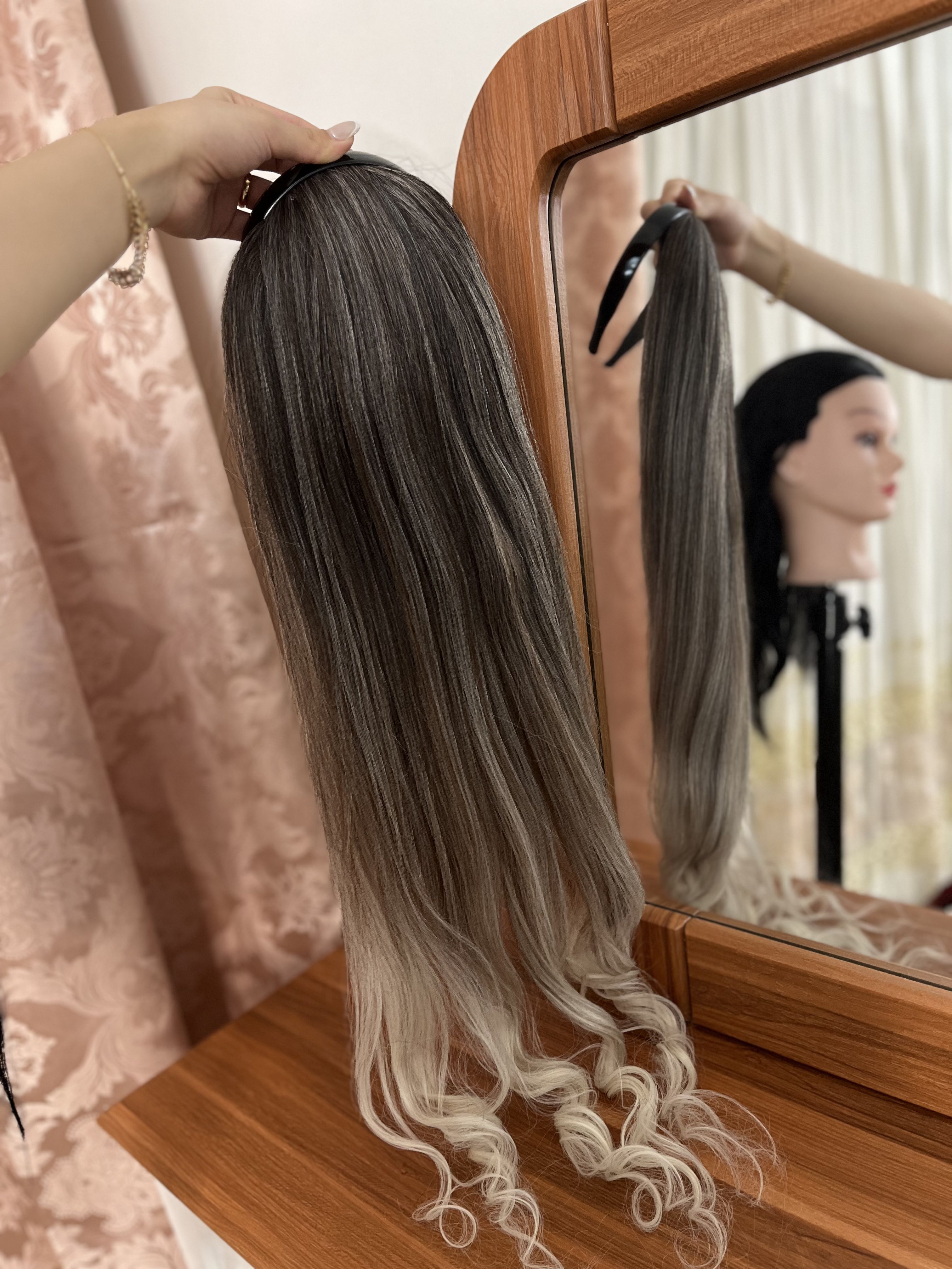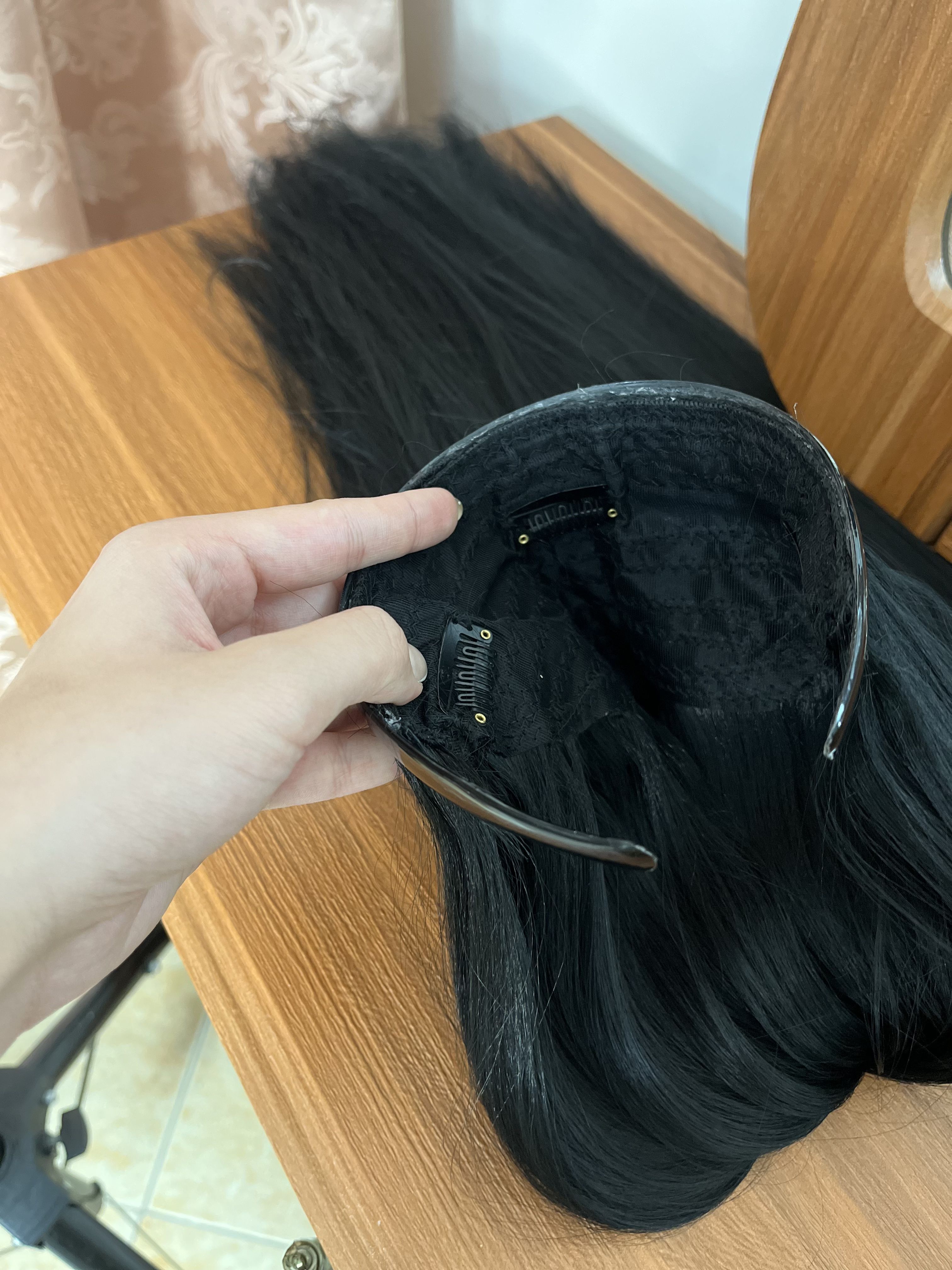 تل مویی مخصوص پشت سر-الیاف با کیفیت ابریشمی-زیر کار گیره داره که محکم نصب میشه و از سرتون سر نمیخوره-توجه داشته باشید برای اینکه کاور قشنگ تر و طبیعی تری داشته باشه بهتره هم رنگ موهاتون انتخاب کنید-برای قد دادن به موها و حجم دادن بهشون خیلی گزینه مناسبی هست -موهای کله مانکن در عکس ها هم کوتاهه که این کار کاورش کرده-اگر موهاتون فر هستت بهتره قبل از نصب اتو بکشید که با این اکستنشن تلفیق خوبی داشته باشن البته میتونید با بابلیس درجه 180نهایت 220این مو رو هم حالت بدید-اگر رنگ موهاتون داخل عکس ها نیست میتونید به شماره ای ک داخل سایت گداشته شده پیام بدید تا براتون تولید بشه-قدهای کار بین65تا70سانت هست و حجم پر-
