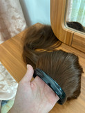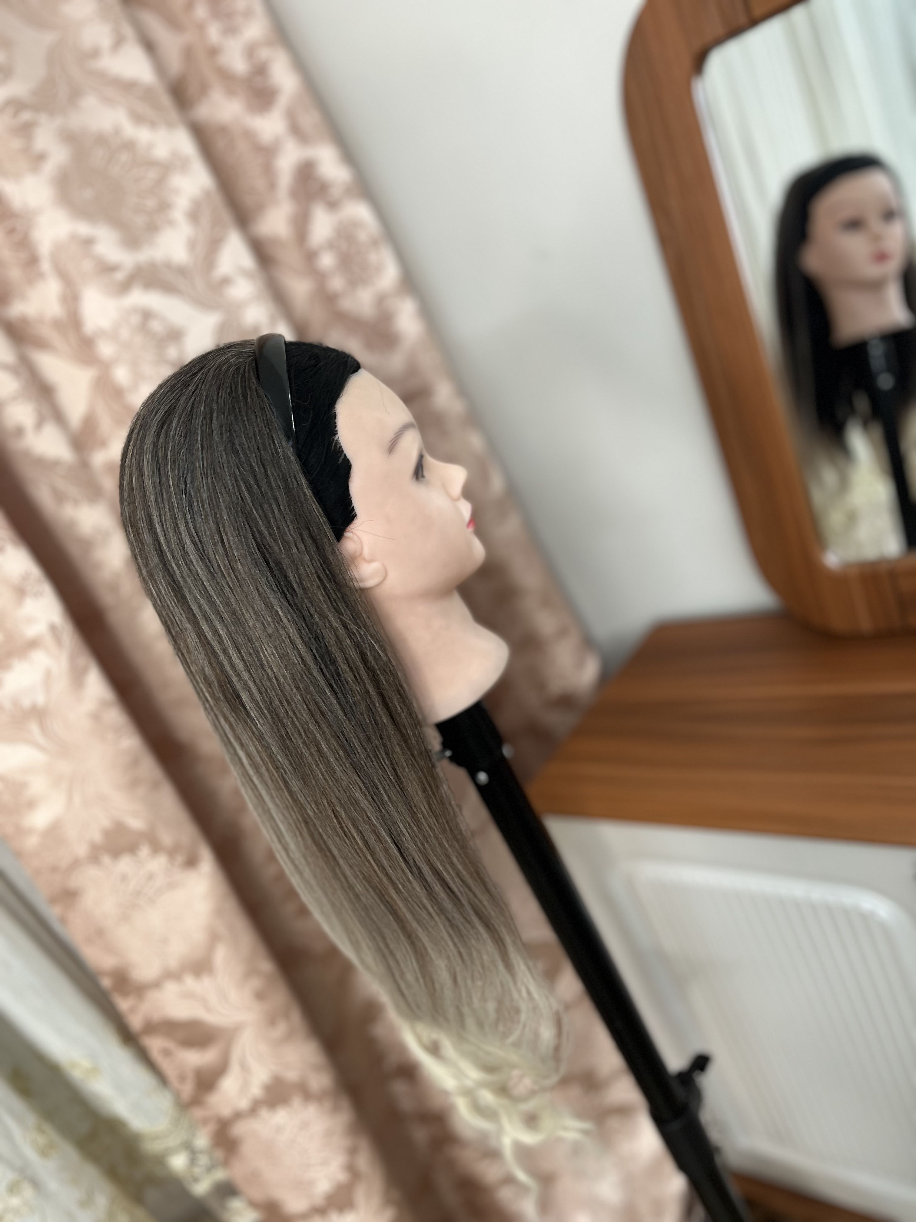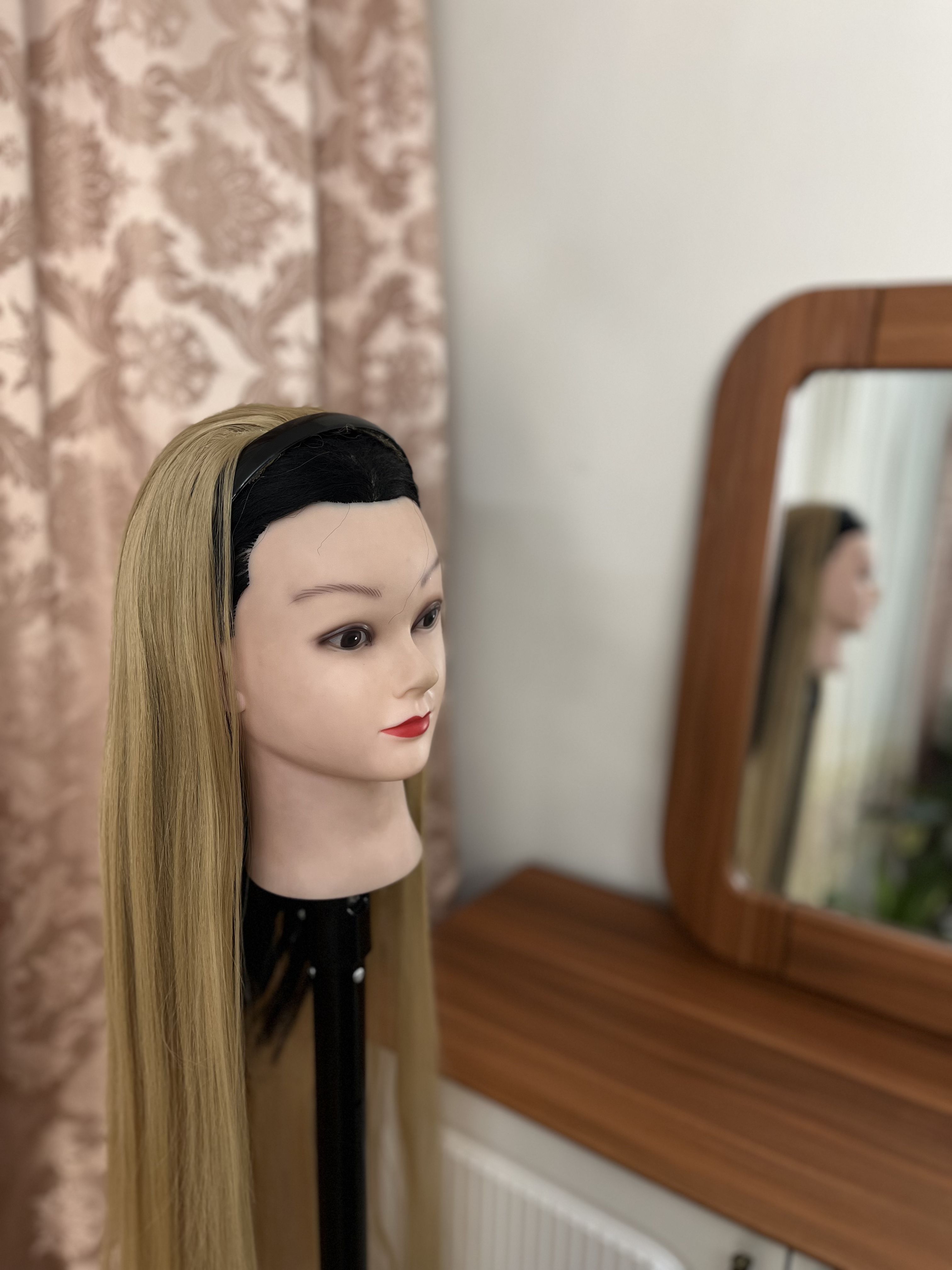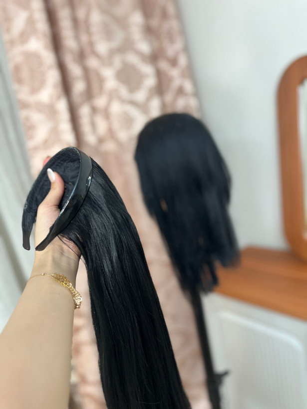 تل مویی مخصوص پشت سر-الیاف با کیفیت ابریشمی-زیر کار گیره داره که محکم نصب میشه و از سرتون سر نمیخوره-توجه داشته باشید برای اینکه کاور قشنگ تر و طبیعی تری داشته باشه بهتره هم رنگ موهاتون انتخاب کنید-برای قد دادن به موها و حجم دادن بهشون خیلی گزینه مناسبی هست -موهای کله مانکن در عکس ها هم کوتاهه که این کار کاورش کرده-اگر موهاتون فر هستت بهتره قبل از نصب اتو بکشید که با این اکستنشن تلفیق خوبی داشته باشن البته میتونید با بابلیس درجه 180نهایت 220این مو رو هم حالت بدید-اگر رنگ موهاتون داخل عکس ها نیست میتونید به شماره ای ک داخل سایت گداشته شده پیام بدید تا براتون تولید بشه-قدهای کار بین65تا70سانت هست و حجم پر-