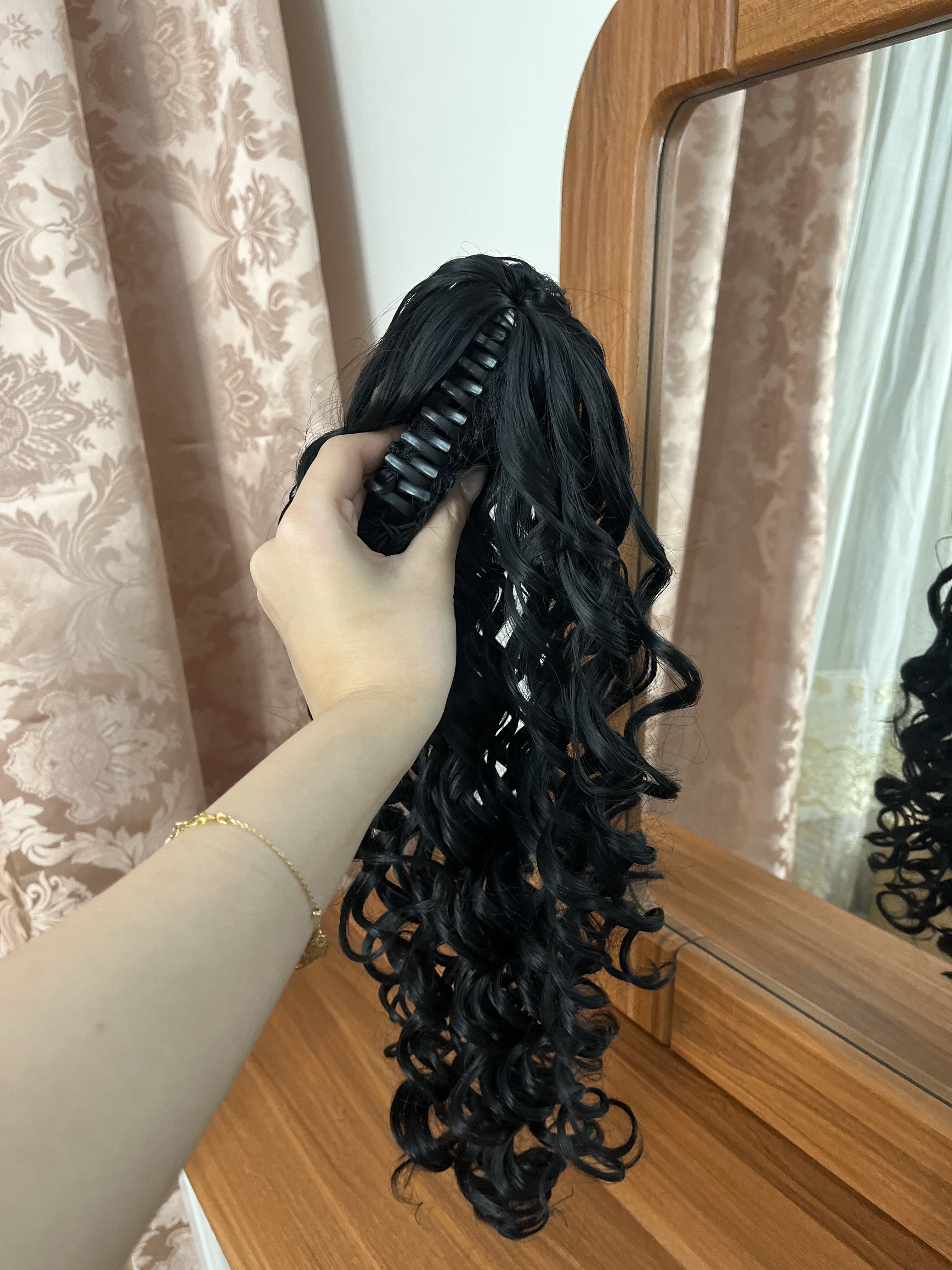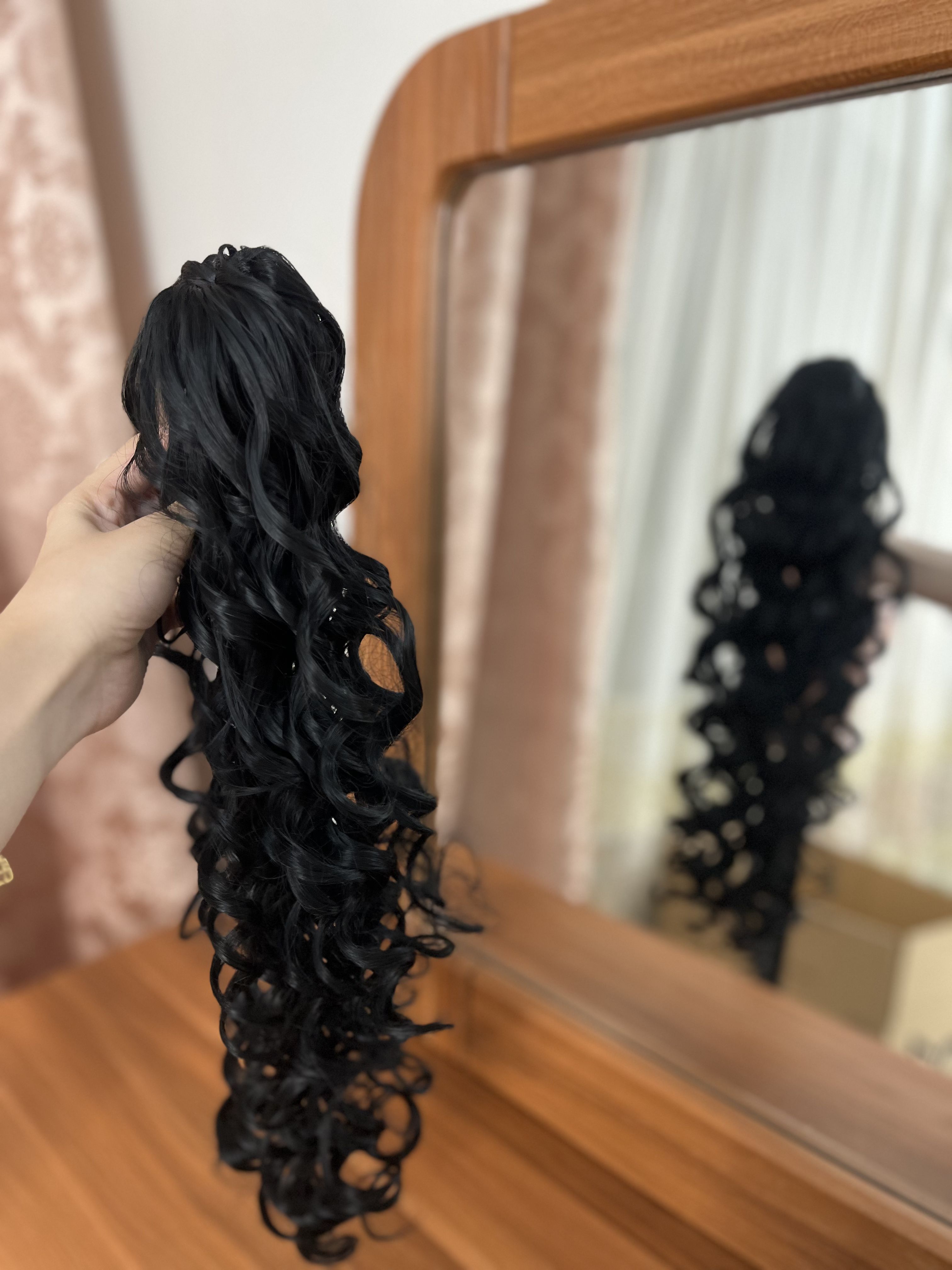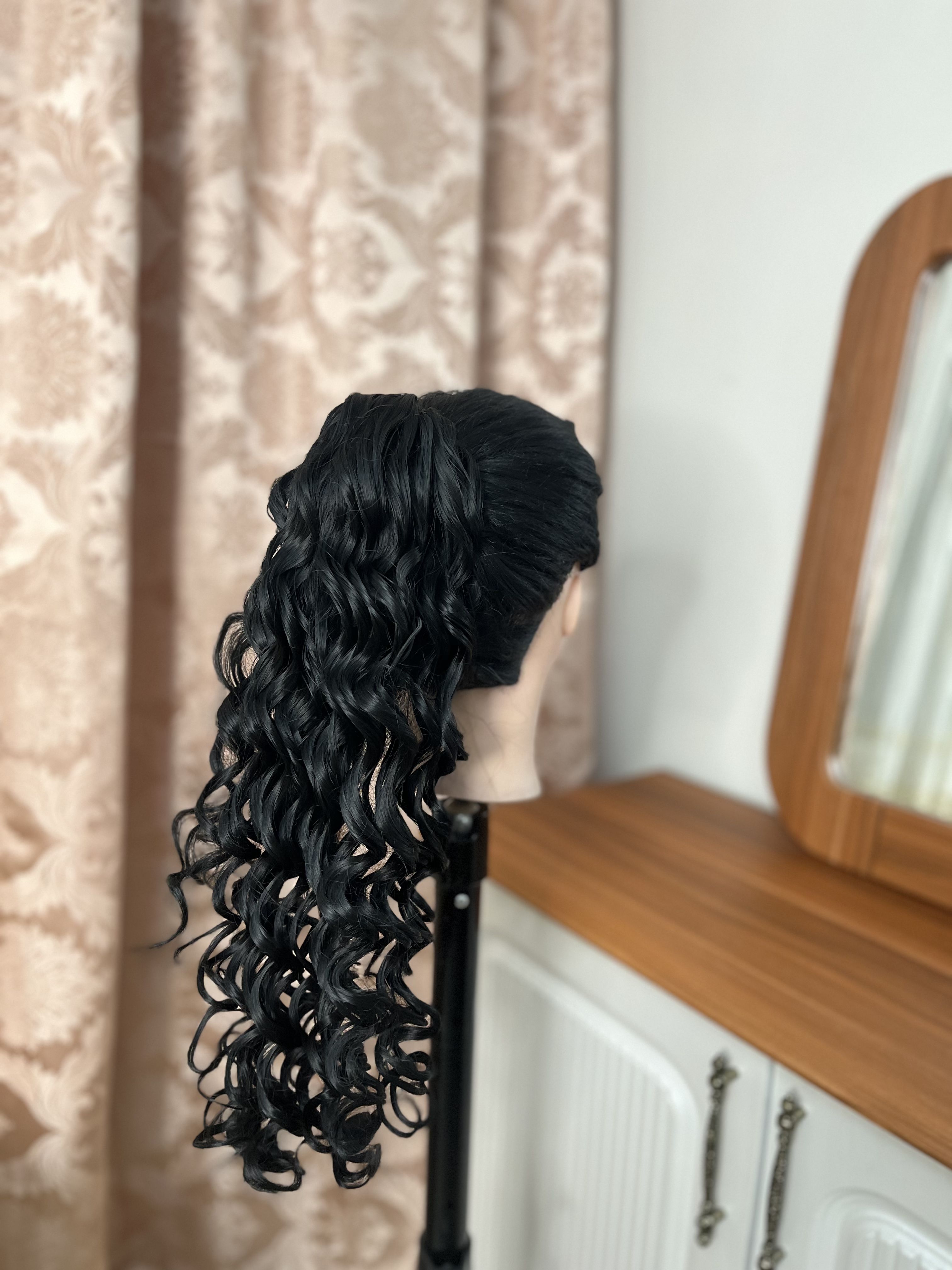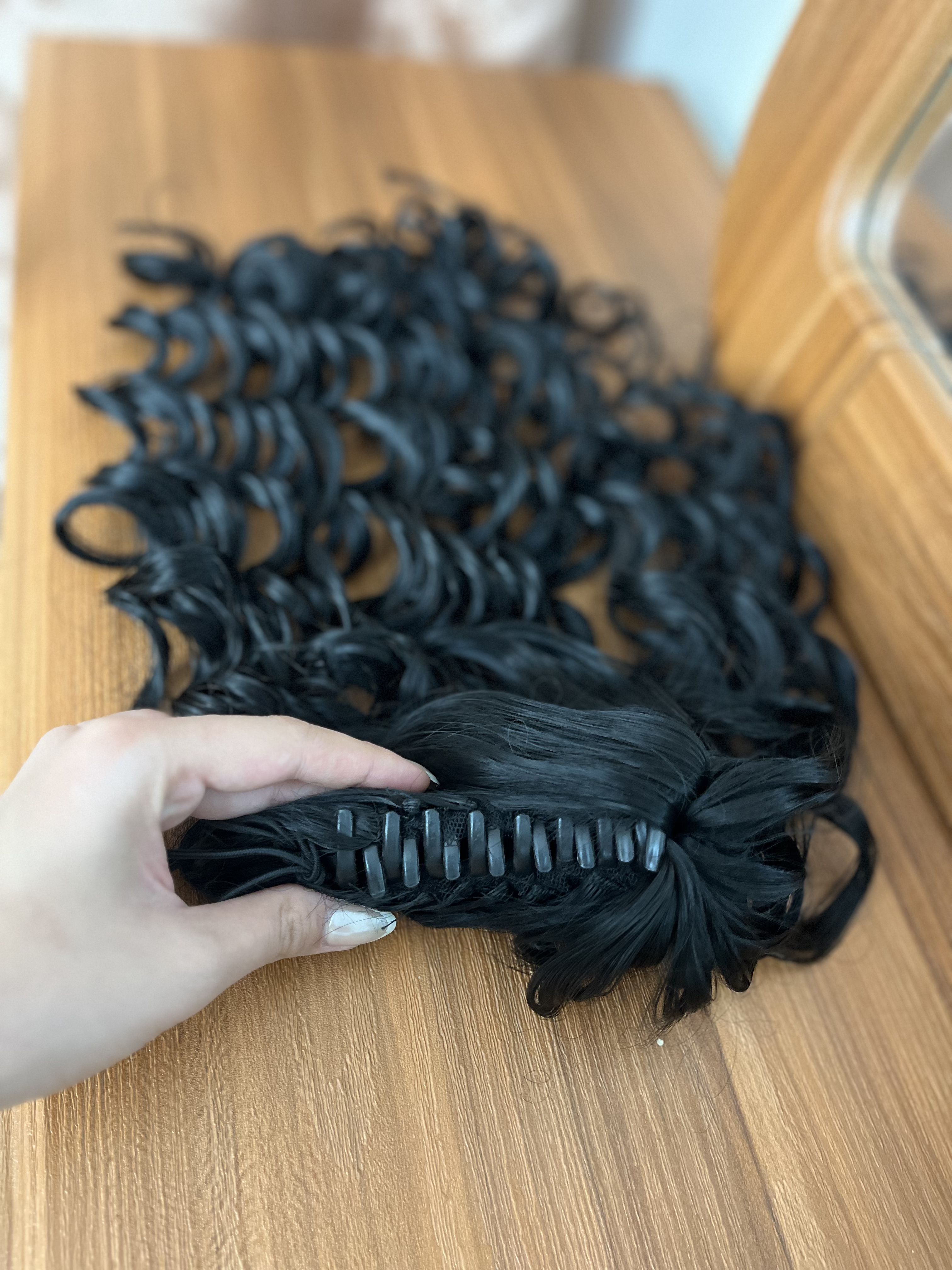 دم اسبی کلیپسی کرلی-قد حدودا45سانت-قابل حرارت و شستشو-رنگ مشکی طبیعی