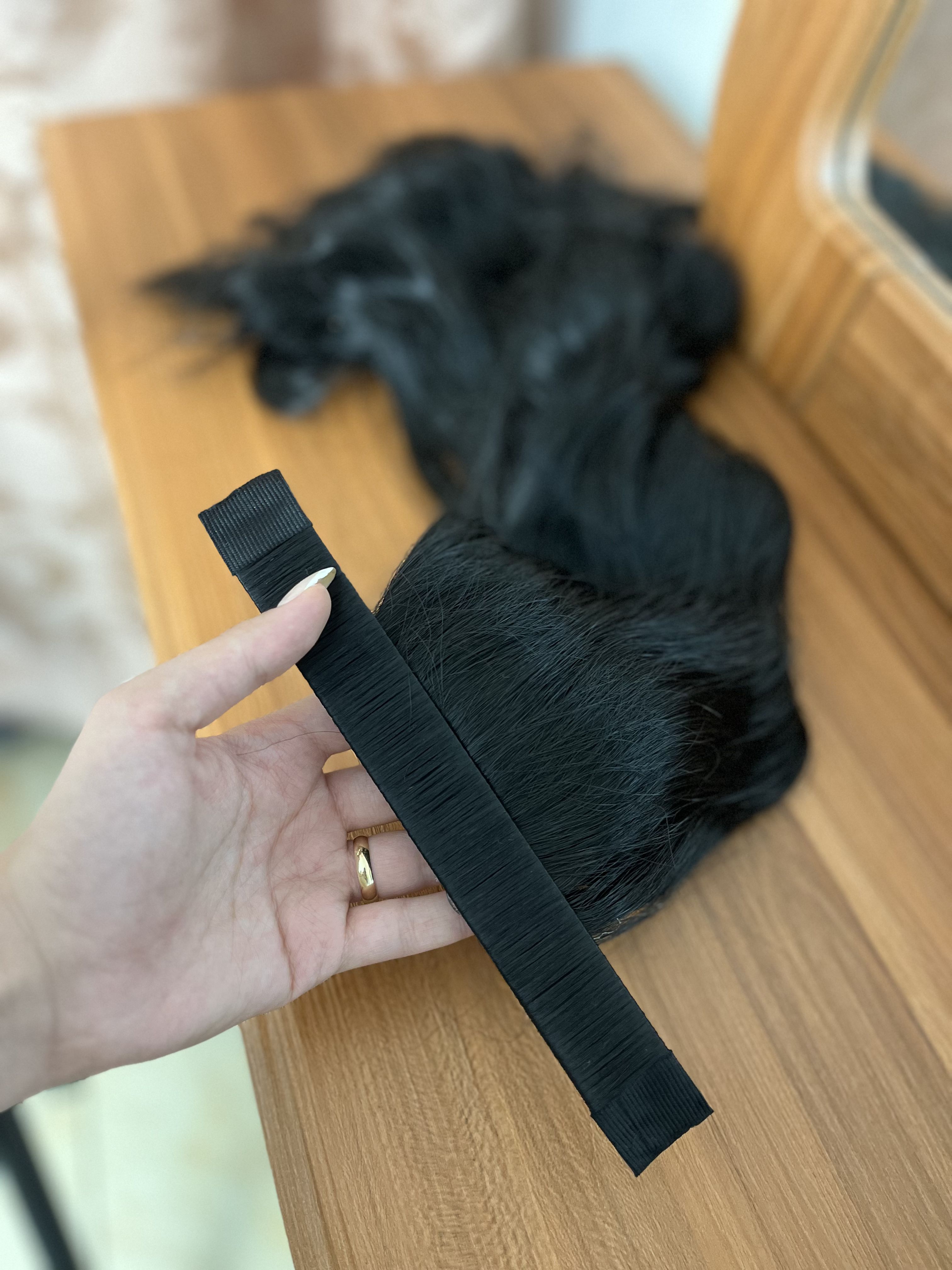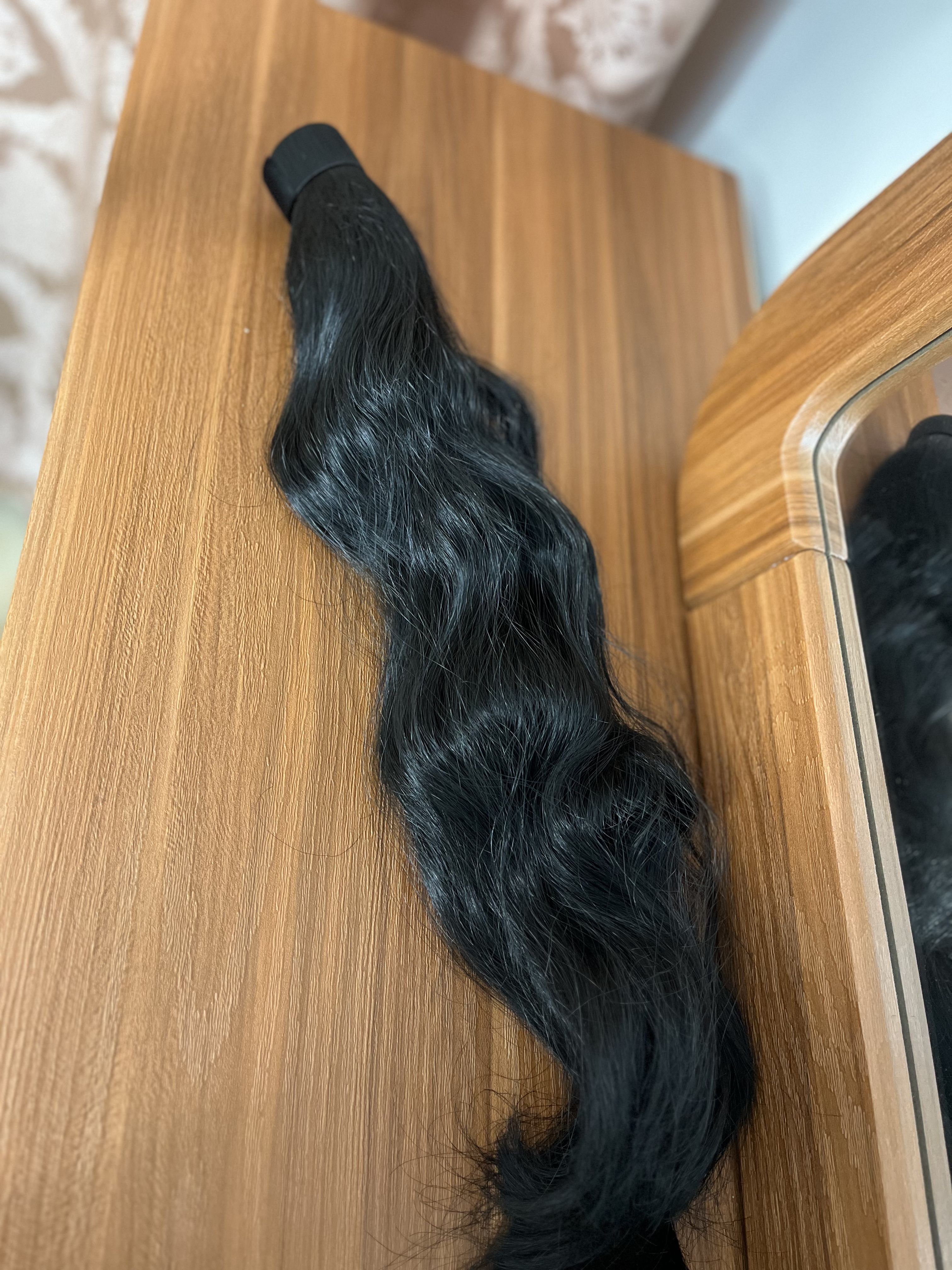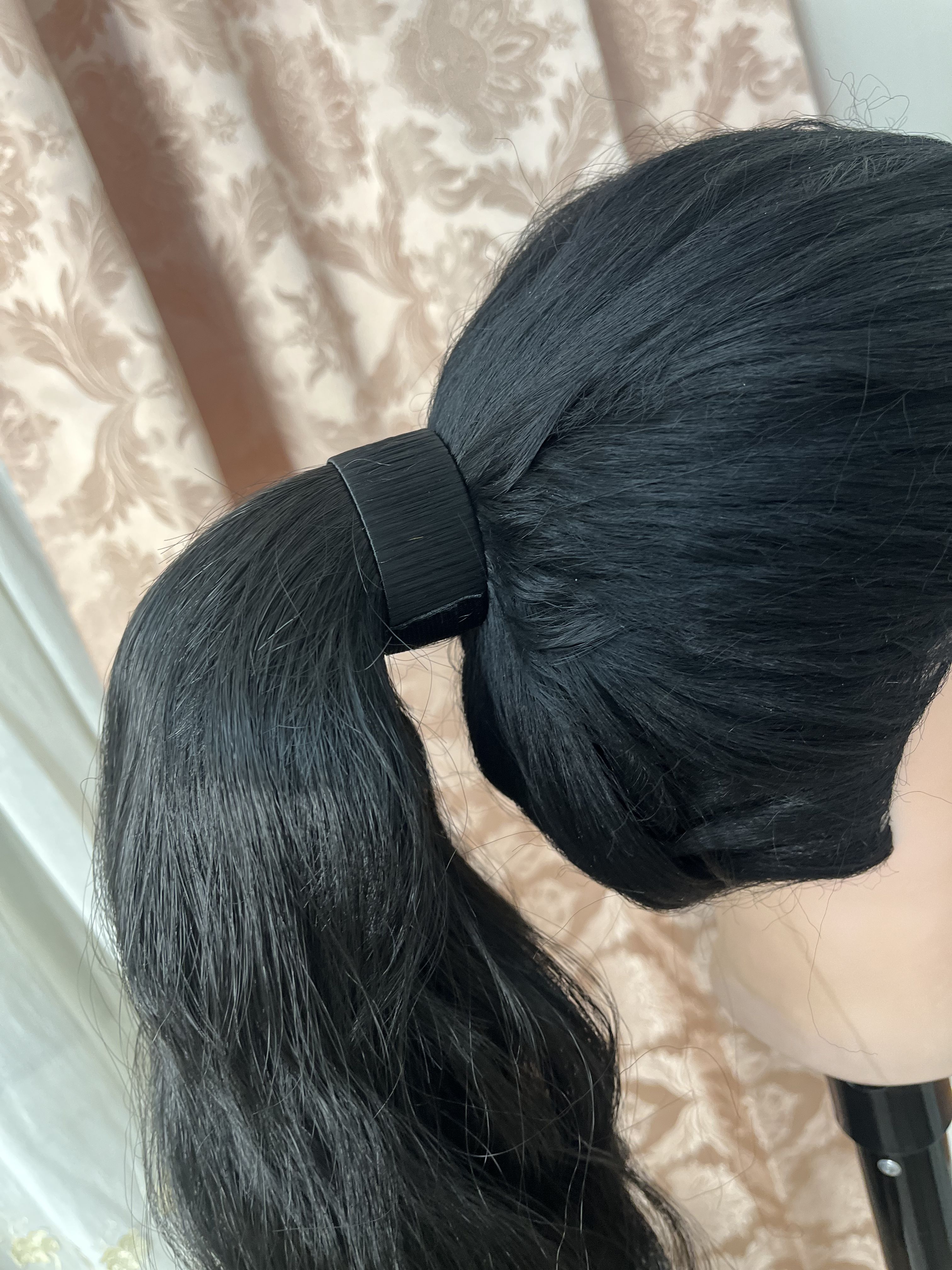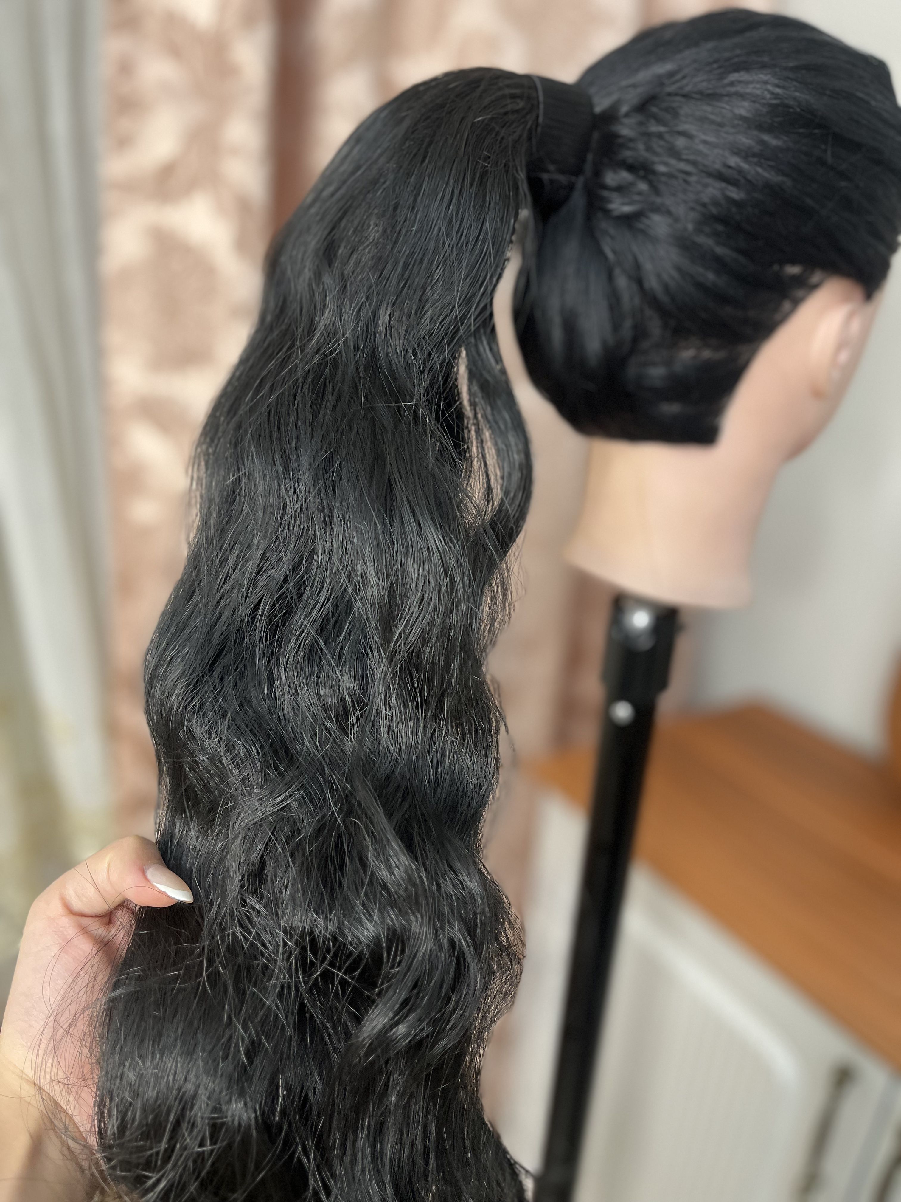 دم اسبی مگنتی حالت دار رنگ مشکی طبیعی-قد حدودا50سانت -قابل حرارت و شستشو